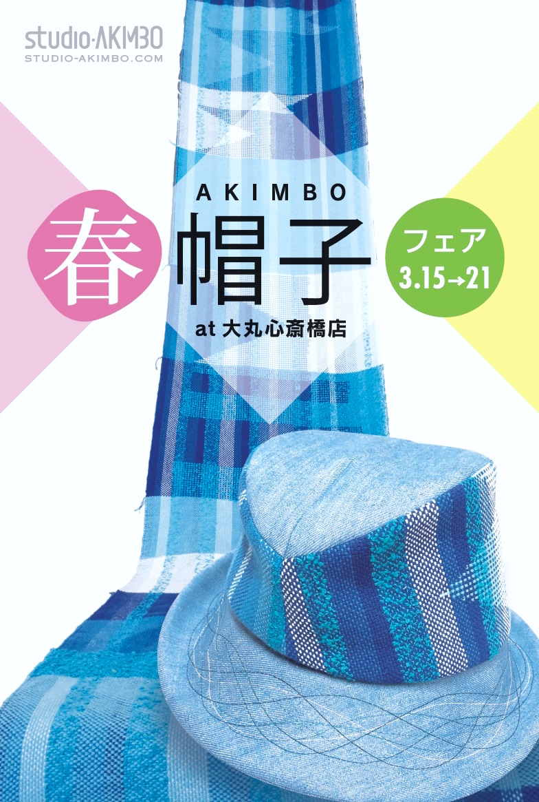 -Event-Pick upS/S帽子 Event : 大丸心斎橋店 北館B1F 春の帽子フェア 2017/3/15 – 21 akimbo - 2017-03-072017-03-14 大丸心斎橋店 北館地下1階にて「春の帽子フェア」を開催。 SS新作が多数ラインナップ。 サイズオーダーやプチカスタマイズにも対応します。 ————————————— 場所:大丸心斎橋店 北館地下1階 婦人洋品売場 期間:2017年3月15日(水)〜21日(火) AKIMBO滞在予定:全日 11〜18時 ※心斎橋大丸へのアクセス方法 住所:〒542-8501 大阪市中央区心斎橋筋1-7-1 大きな地図で見る